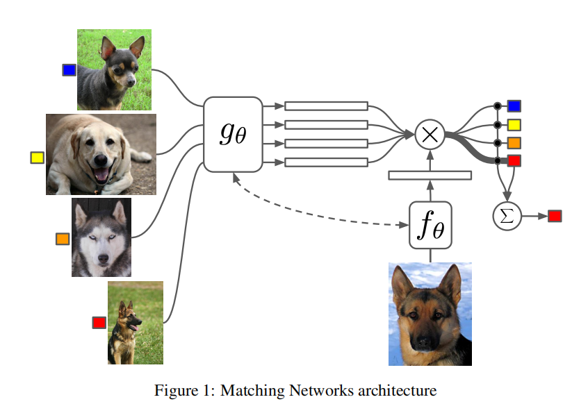 融合了参数化和非参数化的方法,训练时将样本作为序列输入LSTM,让模型纵观所有的样本并进行输出。测试时用LSTM对测试样本进行K此迭代编码进行输出。使用Cosine距离对两者的相似度进行度量,随后做softmax。